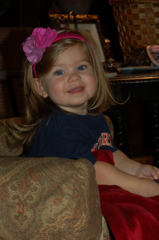 This past year has brought so many firsts for our precious little girl. First playdates, first pony tails, first words, gymnastics, and first friends. What I have loved most about our girl is her bright personality. She is a total spazz and we love every second. She calls herself "Ev Relle" and loves to laugh at herself. Her love for baby dolls continues and she actually could play all day long with a box of baby wipes. She loves to clean her babies and change their diapers. EM also loves a purse filled with all kinds of accessories: bracelets, sunglasses, "lipstick", rings, brushes, etc. Her newest thing is that she loves to brush her hair and also brush anyone else who will let her. We recently started doing her hair in pigtails and I could die over them every time. She calls them "pig-toes" and always says "I-cute" when I finish with the last rubberband. Her obsession with headbands continues and she has now confiscated a few of mine. We have slowly eased her into calling her "nah-nah" a "night night nah-nah" and she has done GREAT about leaving it in her bed during the day and only using it in the car. I am so relieved. Though she is strong willed, she responds very well to being reasoned with if she is given details of the situation and her CHOICES. The girl loves to be in charge of her own destiny. Soo, I have found it is all in how you present the situation with this smart little girl! Just recently, she has paired a new lovey with her beloved Meme. It looks the same--just fresh, new, and pink and she has named it "Kitty Kat," Meme and Kitty Kat go everywhere with us. Anytime she gets disciplined or does not get her way, she immediately asks for Meme and Nah-nah--self-soothing at its finest!